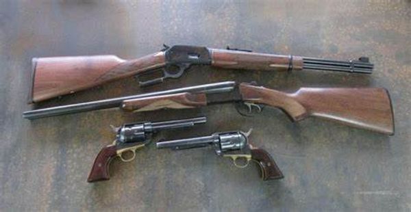 Cowboy Two and Three-Gun Packages consists of a lever action rifle with a single action revolver, and a shotgun. You can choose your rifle and pistol combo from 22LR, 22WMR, 357 Mag, 45 Colt (45 Long Colt), 44 Magnum, and 44/40 (44 WCF) in your rifle and pistol combo. You can choses from 12- and 20-gauge shotguns to compliment your rifle and pistol combo.